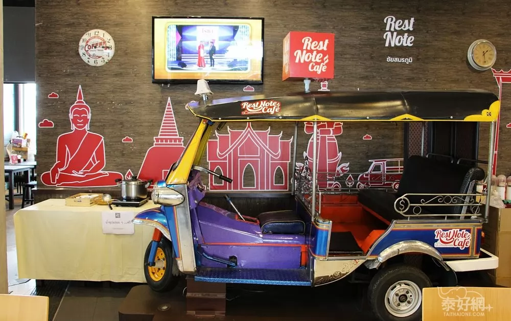 店的裝潢從許多地方可以看出其用心之處,最受矚目的當是在正廳中擺了1台嘟嘟車,後面也有泰式景點的簡圖,看起來泰味十足。