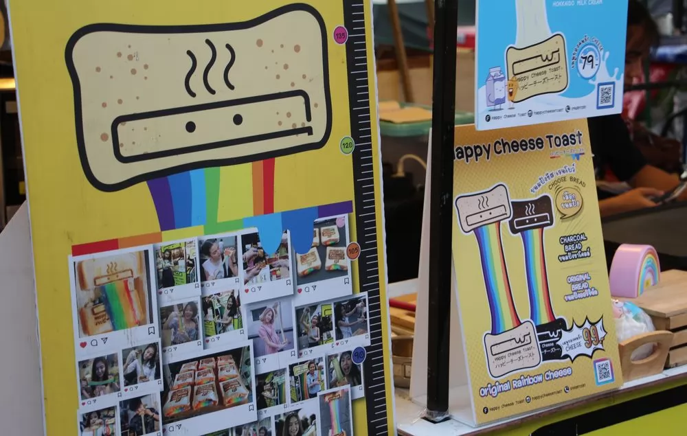 不只是起司口味的吐司,好吃!1塊79銖,更特別的是,內餡的起司也做成彩色的,很多人拉撕開來,拍照後才會捨得吃。