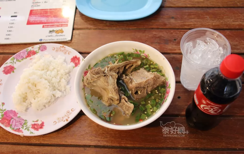 這家泰式酸辣豬脊骨的餐廳,在HuaMum夜市(曼谷Lardprao區Kaset-Nawamin路),客人隨著夜色愈來愈多,雖然不用排隊,但人氣也是超旺的。
