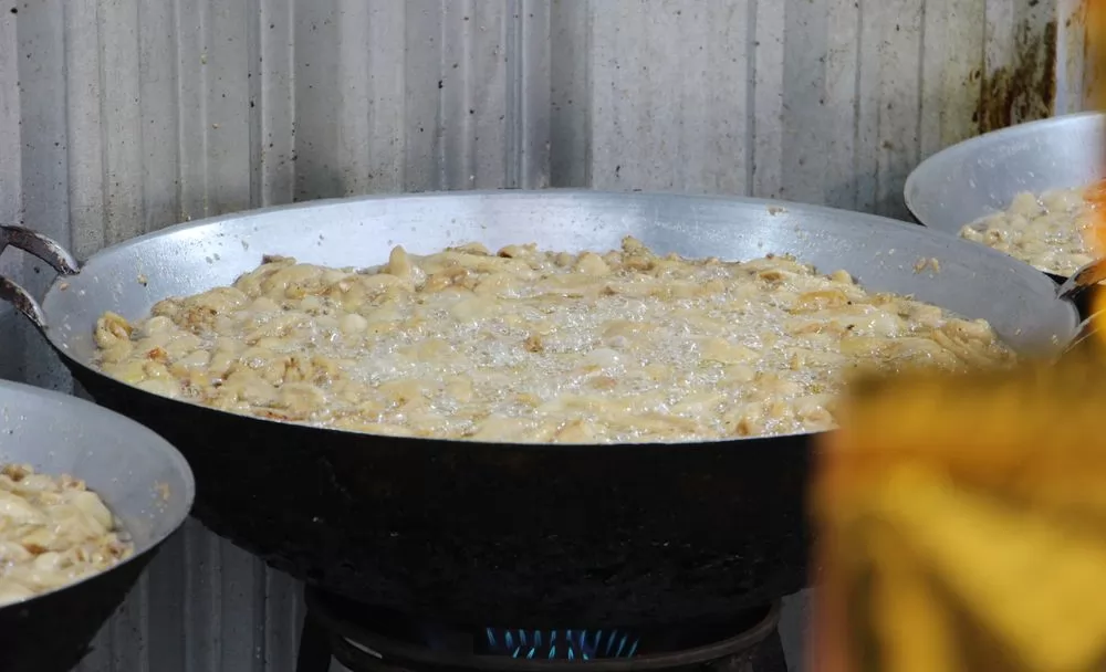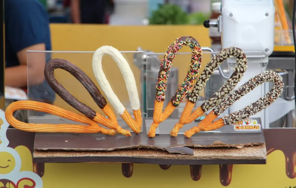 這家攤位賣的是圈麵條,有多種口味,原味49銖、加巧克力或其他配料,價格從65-75銖之間。吃起來香脆。