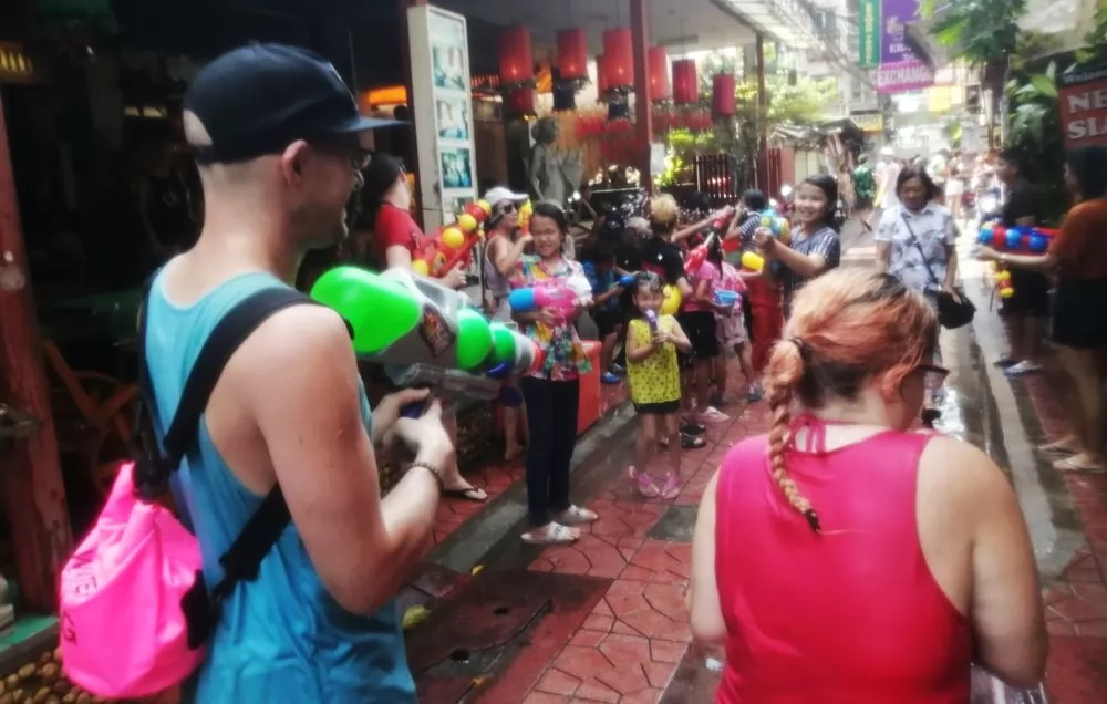 下午兩點在曼谷超級戰區熱鬧進行,泰國青年男女和「老外」攜帶各自的武器,與路旁的設站點的對手,大打潑水戰,如此一路橫掃考山路,每個人都很「HIGH」! 充分享受泰國新年的歡樂氣氛,14、15還有兩天,來曼谷玩可別錯過!