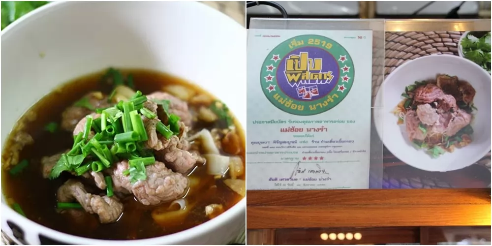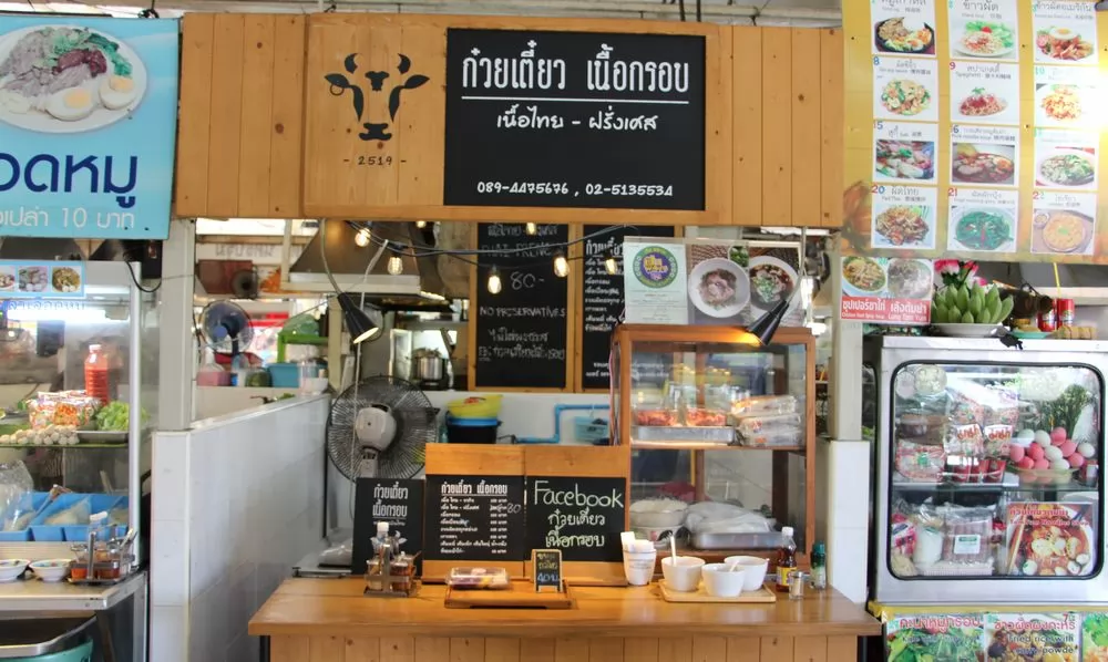 在飲食區攤位中間的這家牛肉粿條店(ก๋วยเตี๋ยวเนื้อกรอบ),在市場也有名,開店已經43年,對於清燉牛肉有其老道的手法,牛肉剛剛好,吃起來就是不一樣。