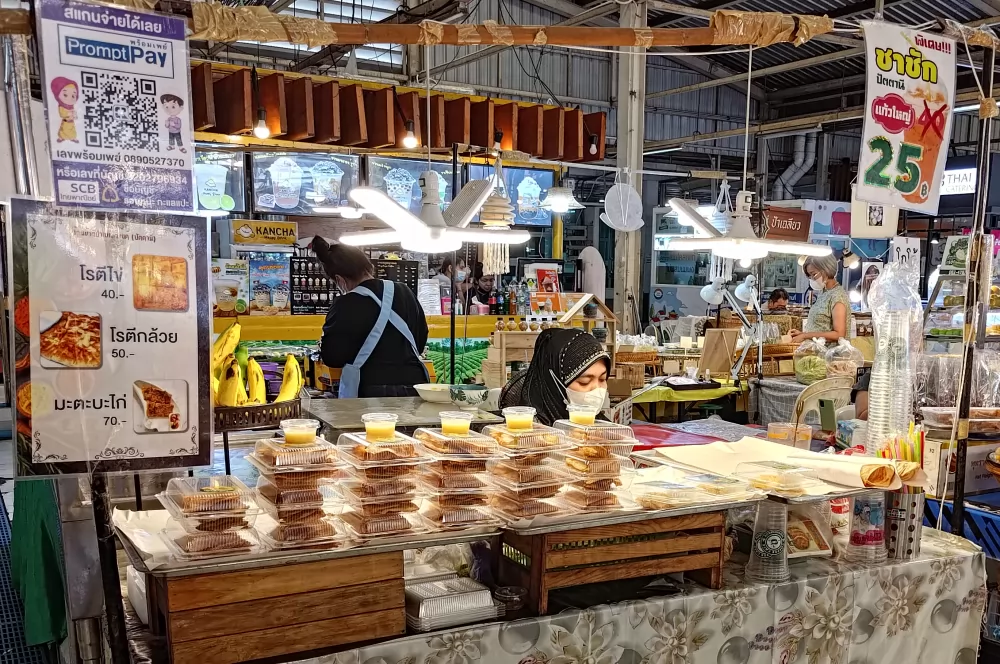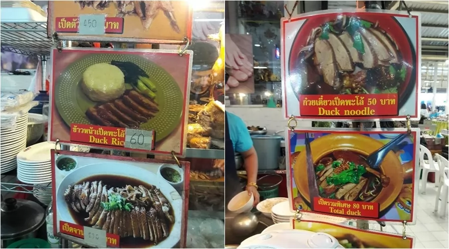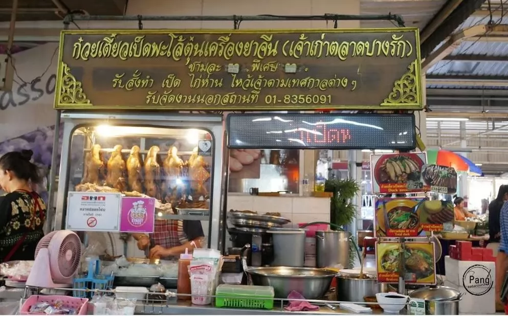 市場飲食區攤位中,有家專賣鴨肉粿條(ตี๋ก๋วยเตี๋ยวเป็ด อ.ต.ก. ),獲得泰國美食媒體的推薦,招牌的鴨肉粿條—普級(1碗50銖);特級(1碗60銖)。