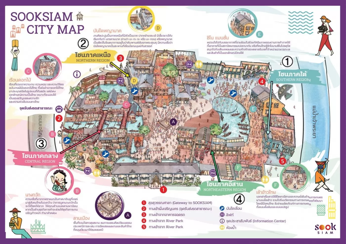 佔地約15,000平方米的SOOKSIAM,G層,彙集來自全國3000商家,所在地都享有盛名、有各自的特色,分別以4個區域用不同方式呈現出來。所以在這裡,可以體驗到泰國各地的民風民俗,已經吸引了2190萬的國內、外遊客前來。