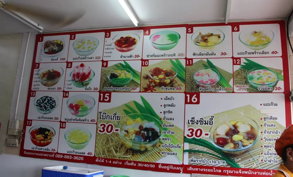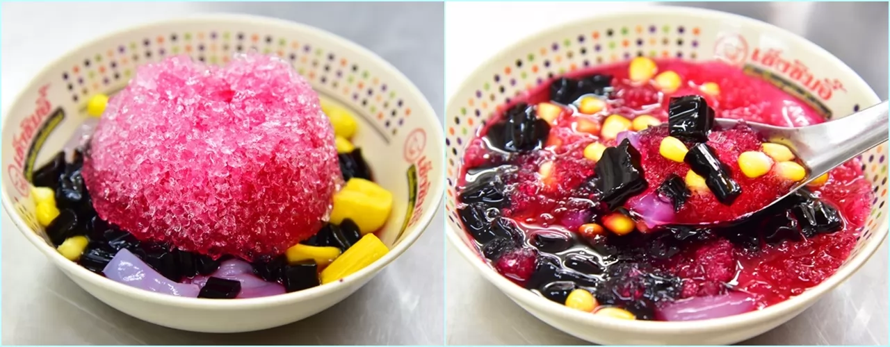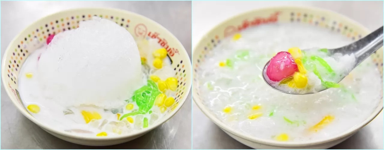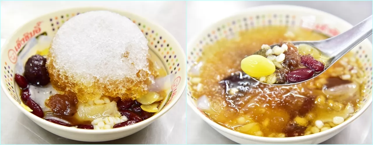 1|เช็งซิมอี๊ :中式口味的冰品,有紅豆、紅棗、白果等,加上碎冰和紅糖水,1碗30銖。