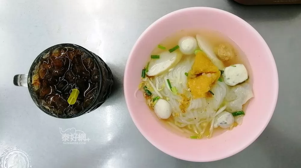對一般人來說,1杯茶飲料1碗魚丸麵,60銖就解決一餐了!