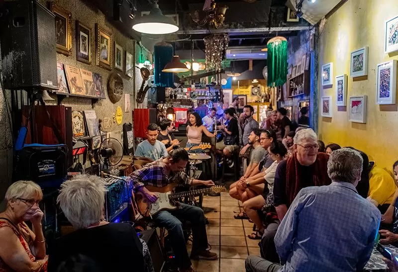 這家酒吧雖然沒有華麗的裝修,也沒有寬敞的門面,空間很小,只能容納約20人,卻完全靠音樂取勝!通常每次你去的時候都會看到酒吧被擠得水泄不通,說它是全曼谷最好的藍調酒吧也一點不為過。
