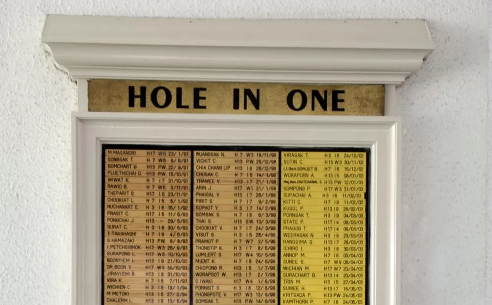對於喜愛挑戰「1桿進洞(Whole in one)」的球友,一定要來這裡試試,因為球場大廳旁有類似紀念碑的佈告板,將達成者的名字、洞數、時間等紀錄上去,並為他們永久留存這閃耀輝煌的成就。