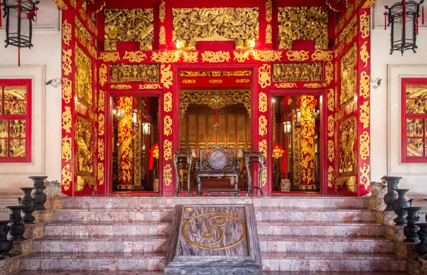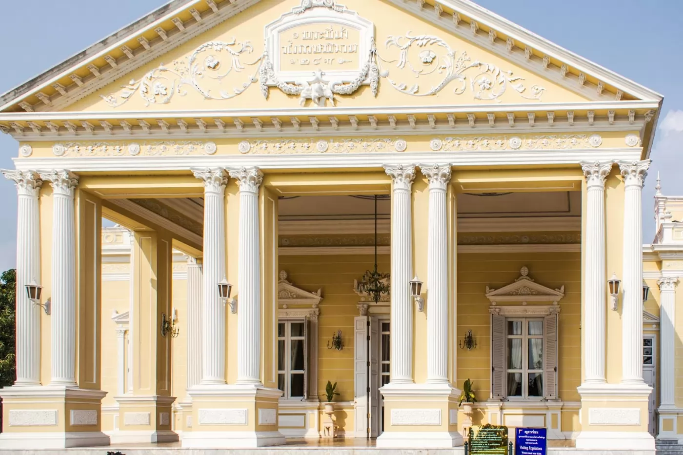 室內裝潢也凸顯中國建築的輪廓:龍騰式的屏風、大量黑檀木家具、金銀瓷器,門廊與窗戶也有精緻奢華的雕花。還有大殿內的寶座,上層是供奉著拉瑪四世、五世與他們王后的靈位,以及拉瑪五世用過的中式龍床和拉瑪六世用過的中式書桌。