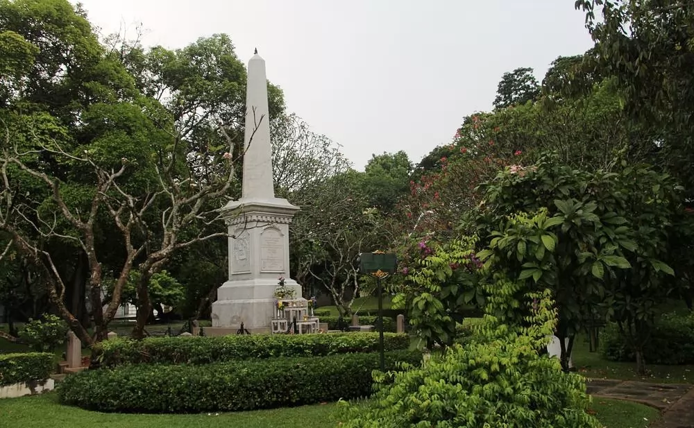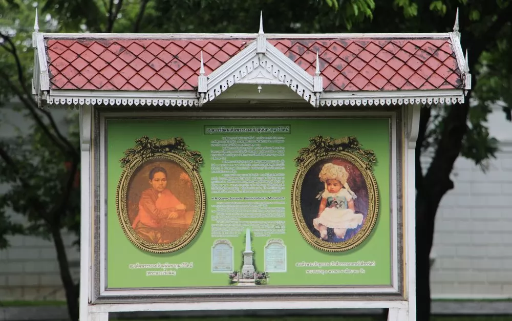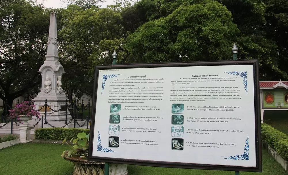 旁邊的另一座紀念碑Momorial to Princess Savabhark Nariratana and three Royal Children是1887年五世王紀念該年過世的撒瓦哈娜里拉塔娜公主和3名子女,四方型的大理石柱子上,雕塑她們的頭像。紀念碑的一側有相關的資訊解說。