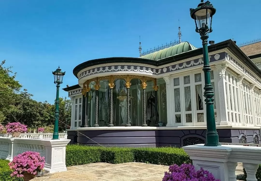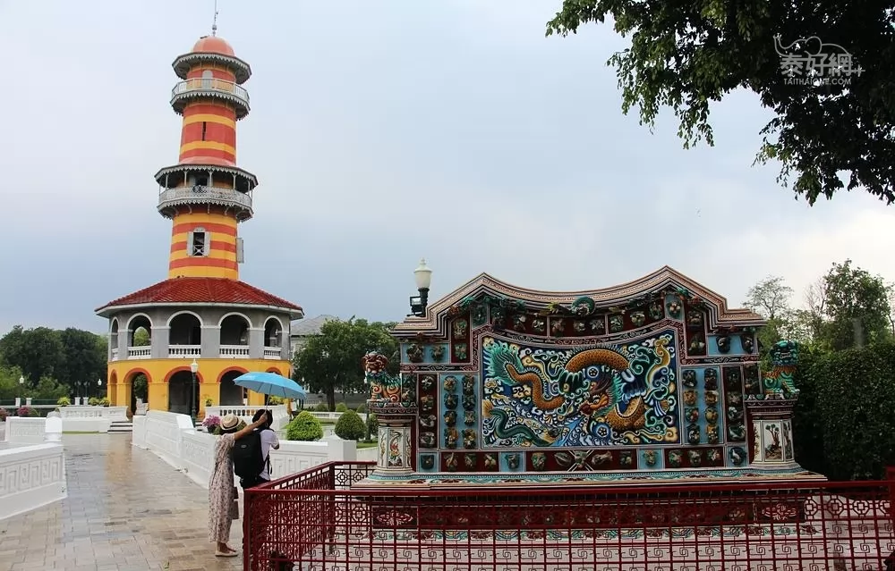 烏塔彥普彌撒天皇家官邸(Phra Thinang Uthayan Phumisathian ),這是一座木材建造兩層高的瑞士小屋,以兩種不同的綠色粉刷外表,新古典主義風格,拉瑪五世王建於1876年,是他在整個夏宮中最喜愛的邸宅,每年總要到這邊度假三次,當時的建築優雅且奢華,內裡金碧輝煌,有從歐洲訂購拿破倫三世時期的歐式紅木傢俱,很值得一看(入內不准拍照)。
