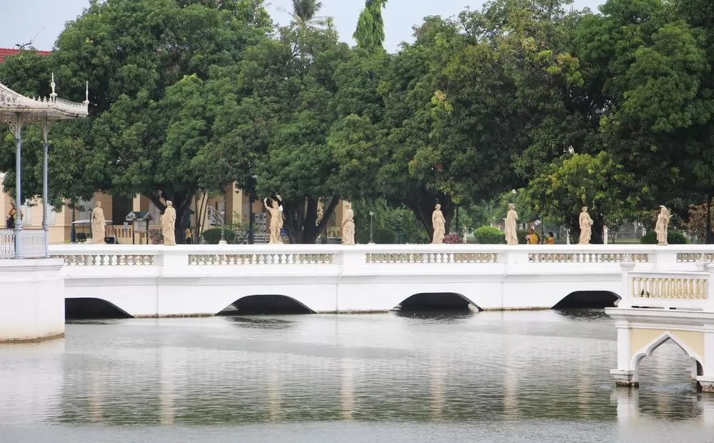 希臘建築風格的雕像橋(Bridge of Statues),是前往瓦露帕碧門王大殿(Warophat Phiman Throne Hall)的通道,石橋兩側有一整排希臘眾神雕像。