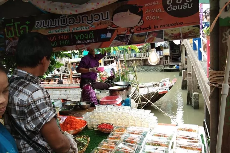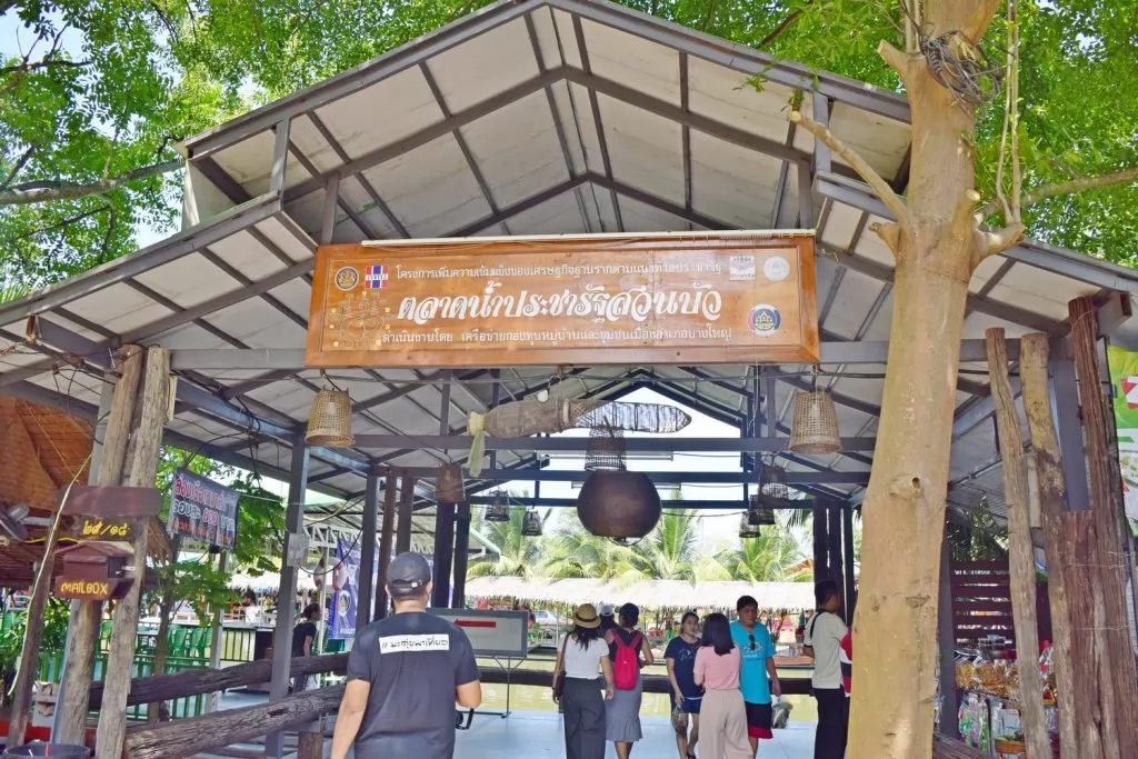 暖武里府(จังหวัดนนทบุรี)的 Suan Bua Floating Market水上市場(ตลาดน้ำประชารัฐสวนบัว),是在Om Non(อ้อมนนท์)河邊的小集市,氛圍十分輕鬆悠閒,且極具當地特色風情。