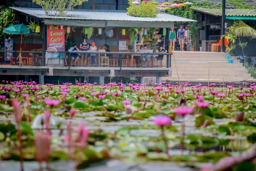 佛統府(จังหวัดนครปฐม)著名的紅蓮水上市場(ตลาดน้ำทุ่งบัวแดง ณ บางเลน),是非常值得一去的水上市場,坐落在廣闊的荷花池邊,一年四季遊客們都可以在此領略紅蓮之美並留影紀念。