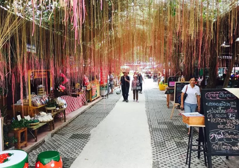 遊客們可以在這裡買到和吃到傳統的泰國食物,如冰涼的粥、泰式傳統點心、孟族傳統菜肴、出自當地農民之手的農產品,還有傳統按摩以及各種各樣的商品。