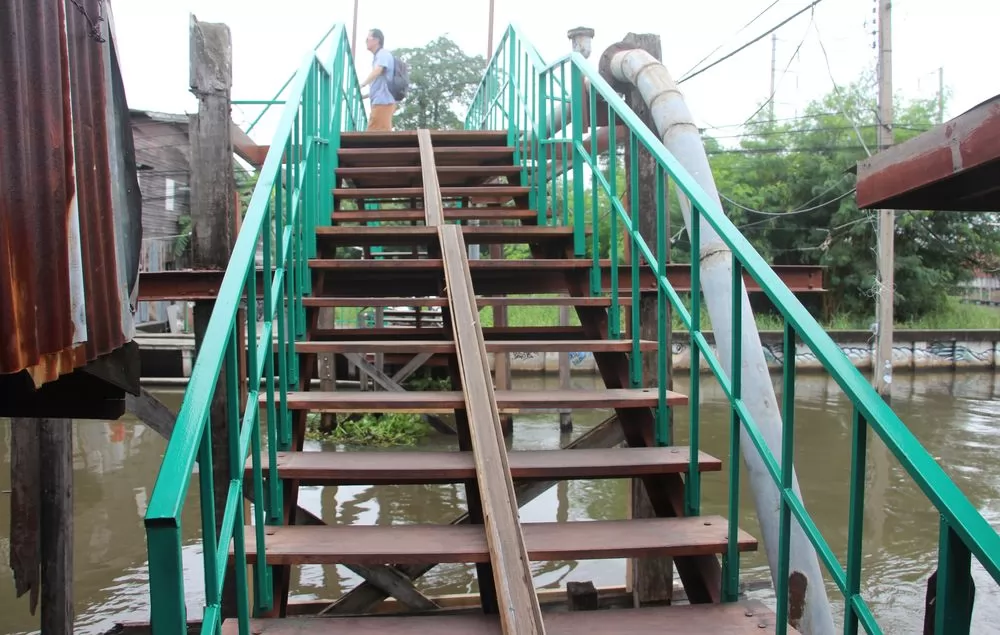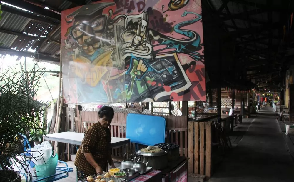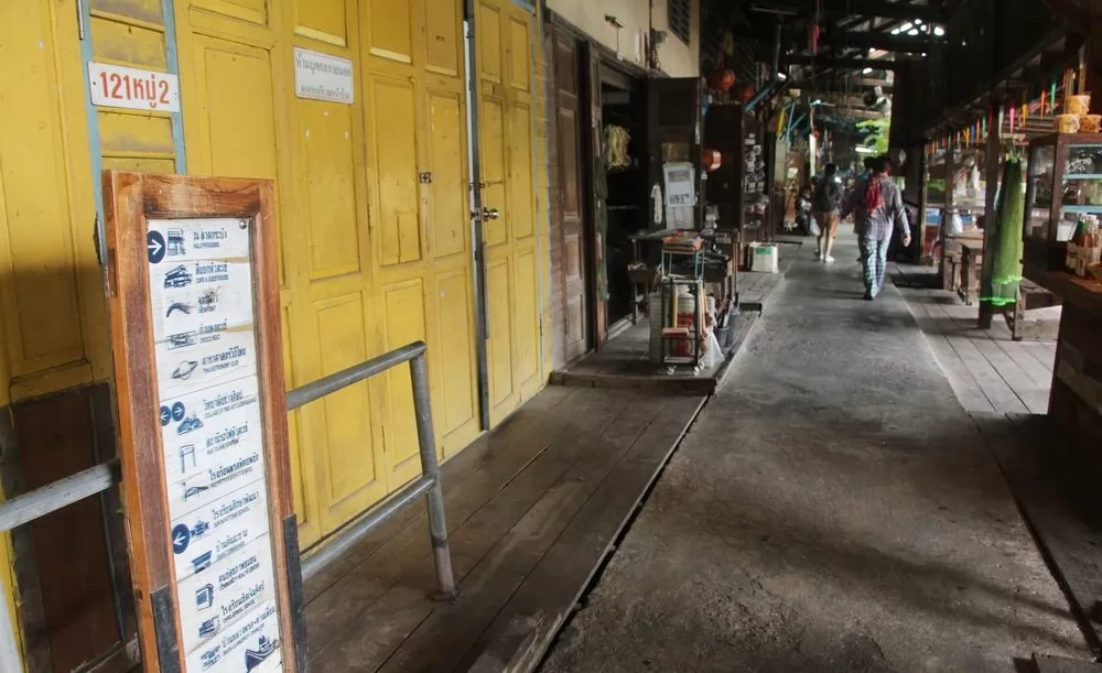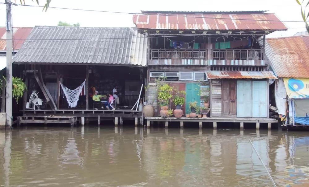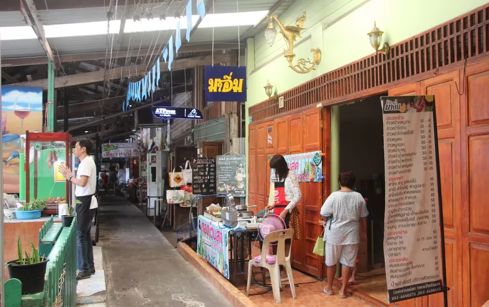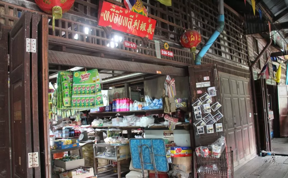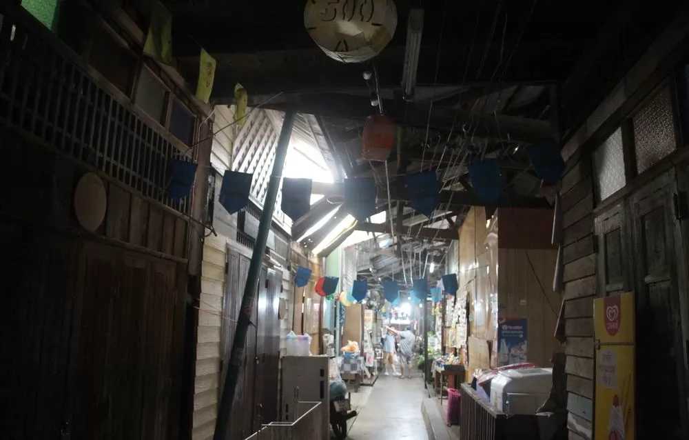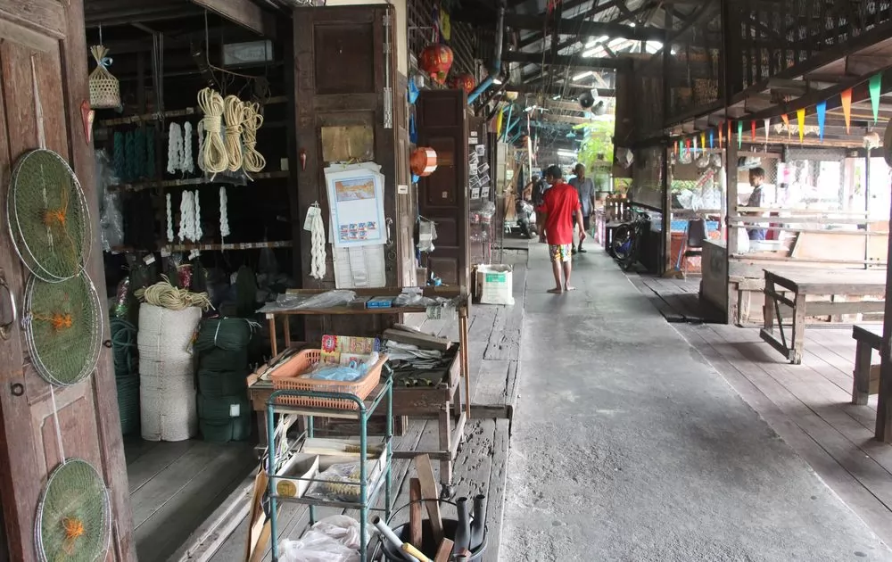 沿著運河興建的高腳木板屋,過去是社區的主要市場,有上百家商店,左鄰右舍賣買貨物的地方,尤其是佛教慶典日擠滿人潮,現已無昔日盛況,但是木窗、摺疊木門,瀰漫懷舊風情,引來不少觀光客。