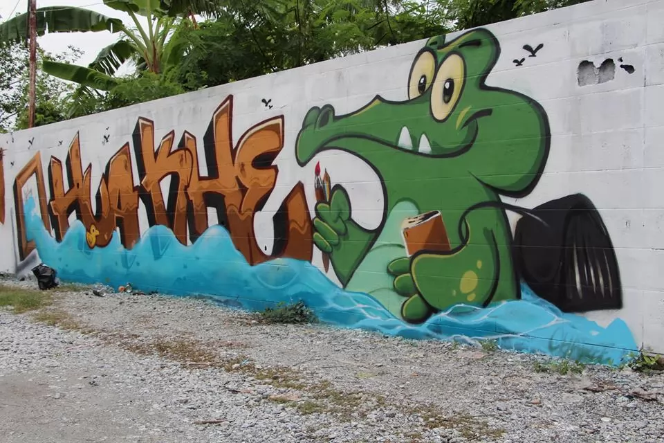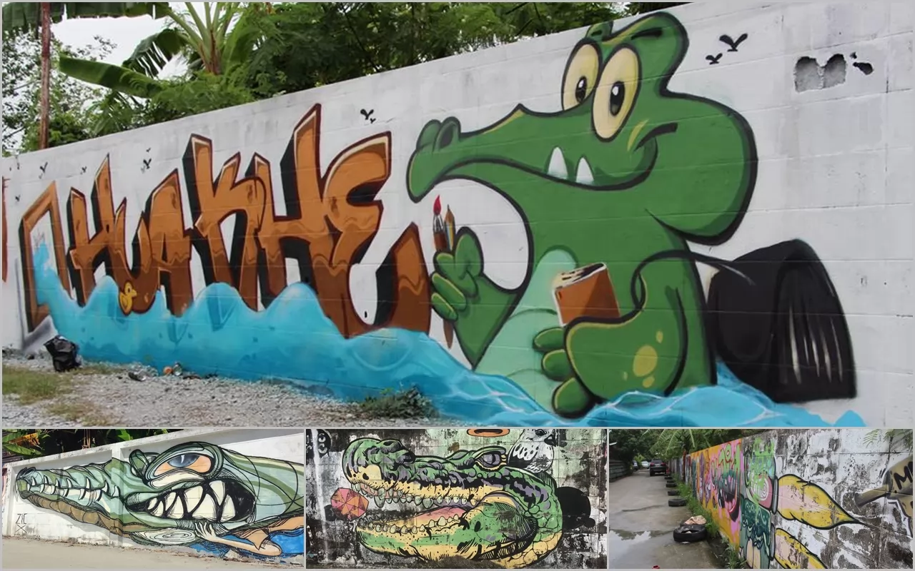 過了到另一邊,是住宅和停車場,牆上的鱷魚頭塗鴉替老社區增添不少活力,很多遊客來這裡必拍照打卡地方。