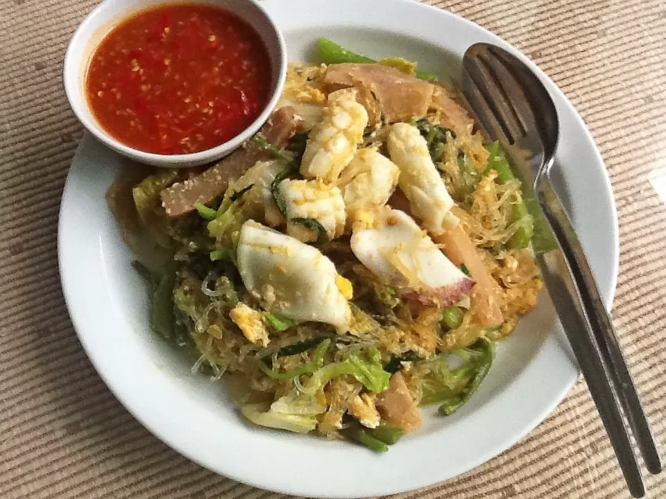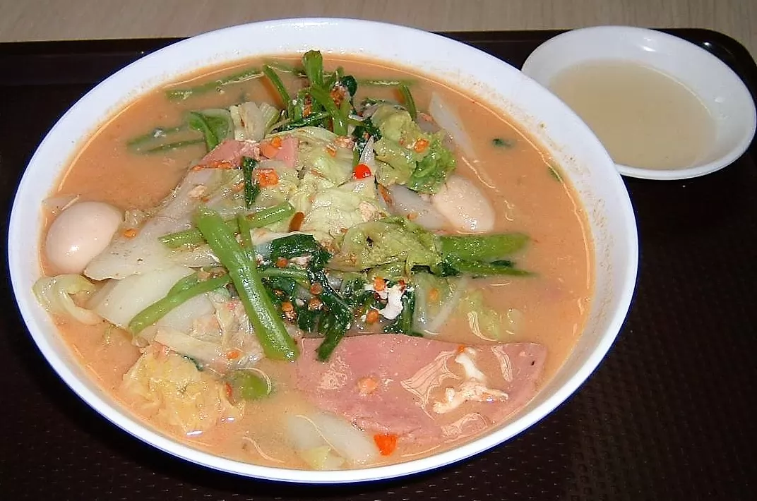 SUKI的發音與「素雞」很接近,千萬別以為是素的雞,泰國話「素雞(สุกี้)」是火鍋的意思,基本上,分雞肉、海鮮、豬肉等幾種,加上各種蔬菜、雞蛋及粉絲等煮過後,盛到碗上送給客人。