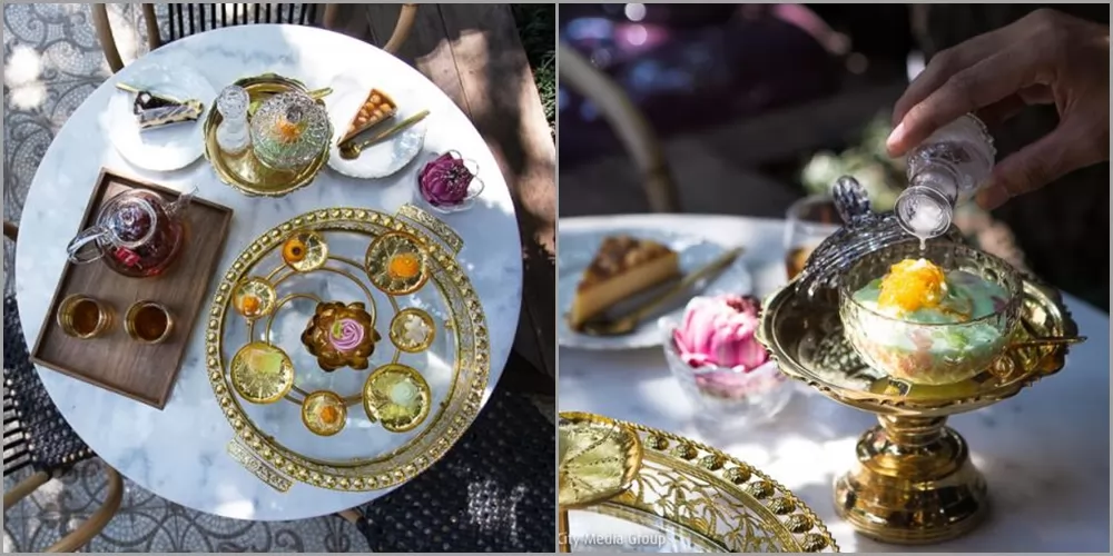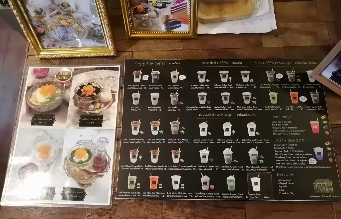 招牌套餐(599銖),包含1個泰式糕點拼盤(有6件傳統糕點),兩塊西式蛋糕(任選兩樣)和兩杯飲料(任意兩種)。飲料可以選擇咖啡、果汁等。