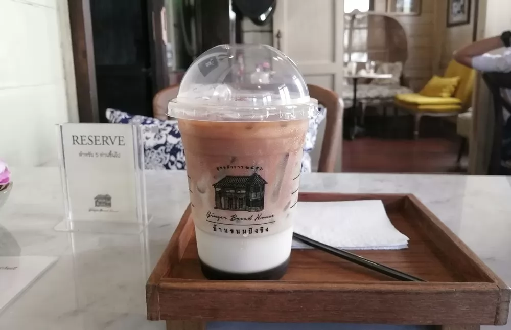 吃飽了,可選店內提供的多款飲品,最有特色的要推薦冰咖啡(95銖),底部有咖啡糖漿,非常濃郁。