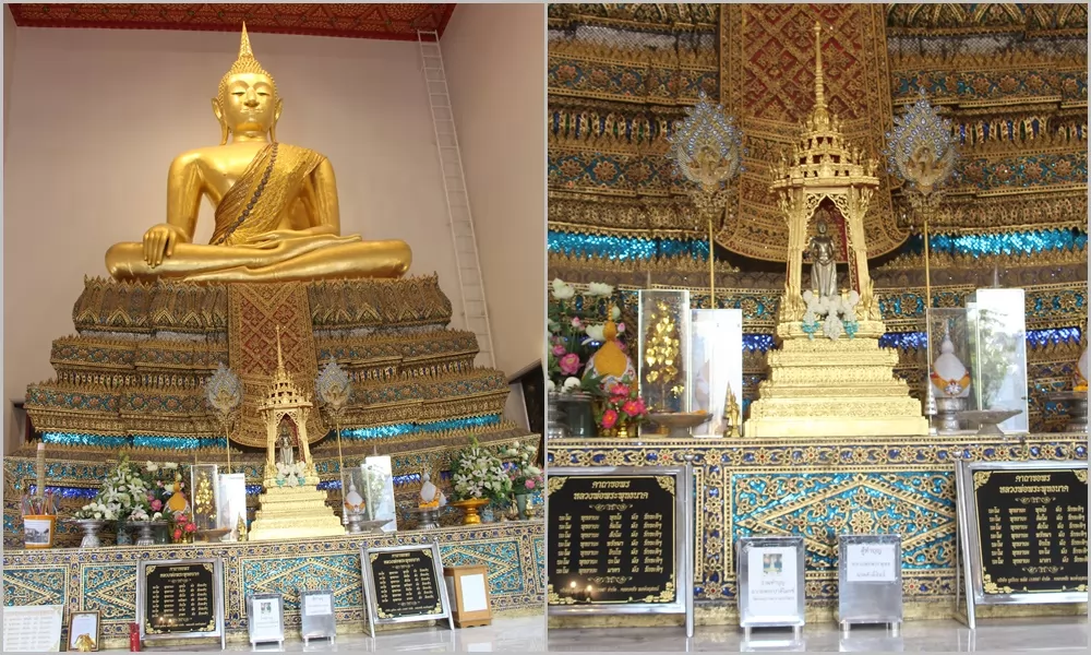 進入內殿,供奉大城時期留傳下來的พระพุทธนาคศักดิ์สิทธิ์坐佛像,身著半肩的袈裟很獨特,難得一見。主佛前也有1尊小立佛。