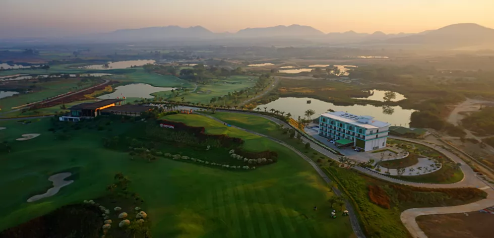這個高品質球場,視野開闊,可欣賞遠處的緬甸山脈全景。一條大河從球場穿流而過,增加原生態風情。