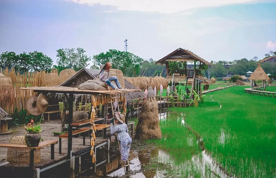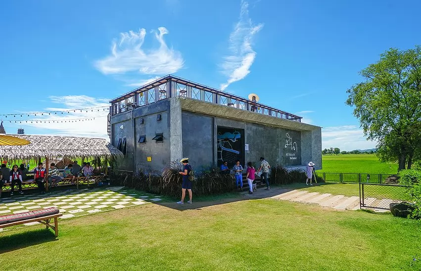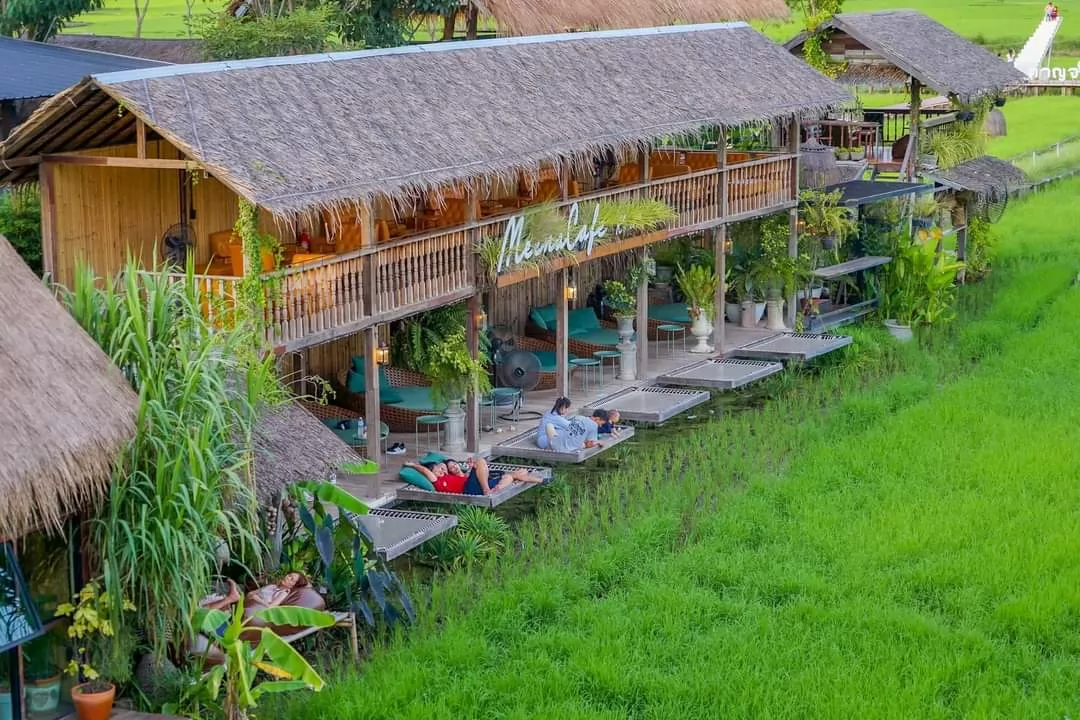 放眼望去是一片綠油油的稻田,再過去是雄偉的寺廟和佛像美景,擁有如此場景的Meena Café(มีนาคาเฟ่ ),想在網路不紅也難!