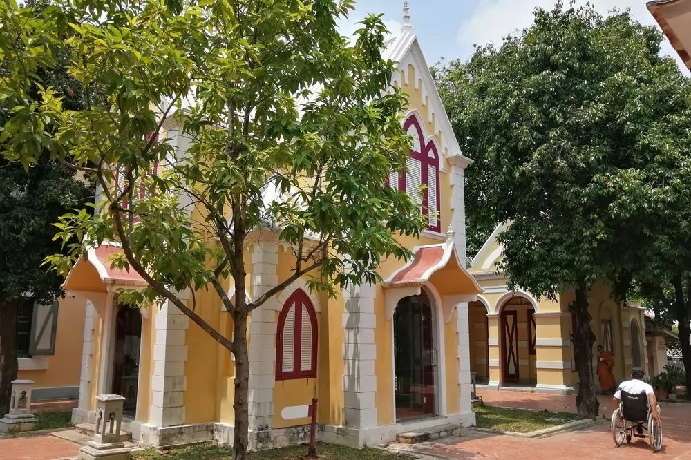 天主教堂外觀,內部卻供奉佛像,拉瑪五世王所建的這座尼維塔瑪帕萬寺( Wat Niwet Thammaprawat/วัดนิเวศน์ธรรมประวัติ),有很多獨特地方,逛完邦芭茵夏宮(Bang Pa-In Royal Palace;พระราชวังบางปะอิน),值得順道來參訪!