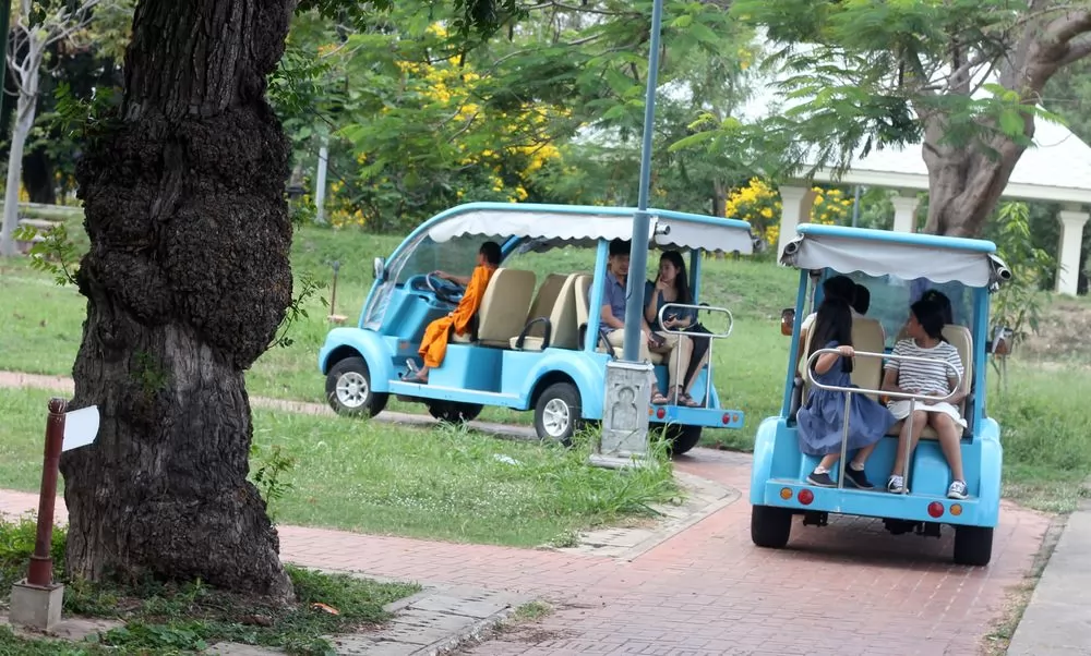 下纜車之後,有時候寺院會出動高爾夫球的專車,由僧人駕駛載客到寺院。