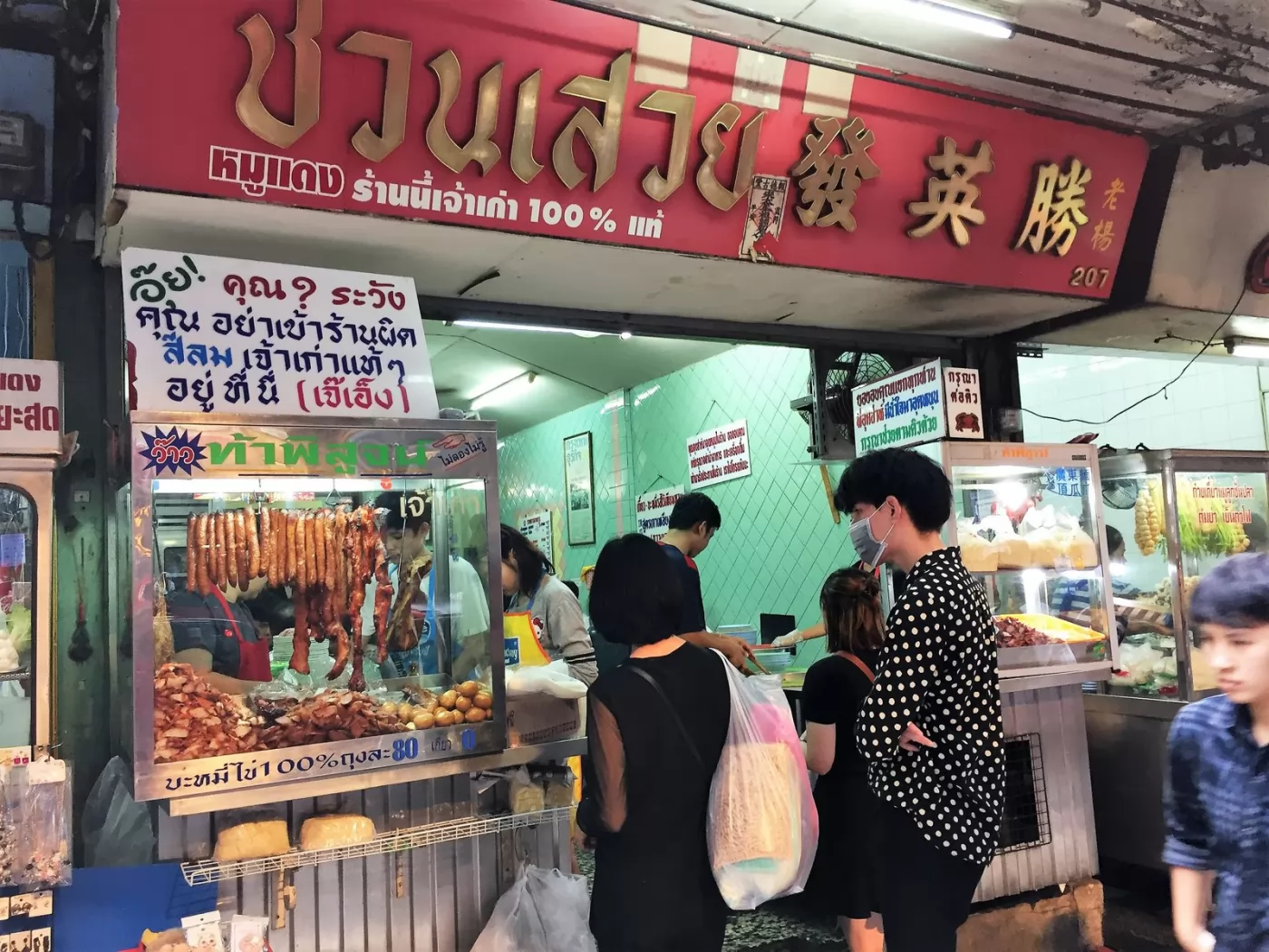 西隆路上的勝英發(ชวนเสวย),上班族和遊客穿流不息的地帶,每到用餐時間,這家店進出的人潮沒有停過,就算無法擠進小小店內用餐,至少也得要求外帶。