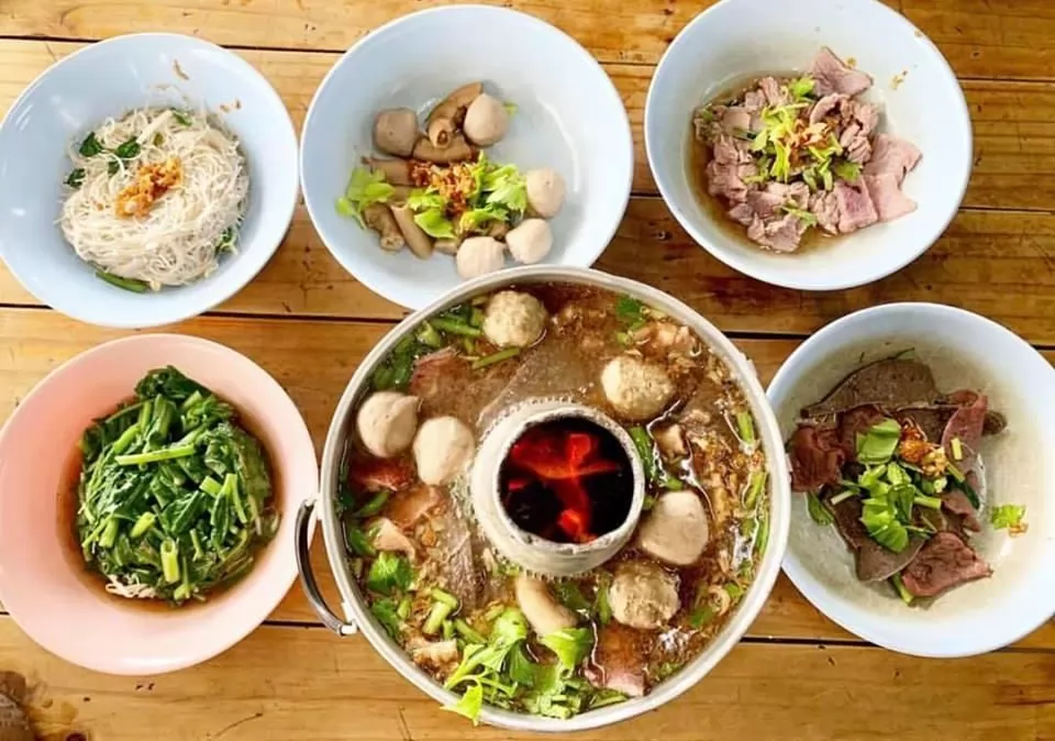 泰國還有一種特色的炭燒牛肉火鍋,這種火鍋起源於潮州移民,和潮汕火鍋不同的是,王春盛(Heng Chun Seng;เฮ้งชุนเส็ง)的牛肉是和草本植物一起燉的,所有有特殊的香氣,再蘸點特有的泰式辣醬,就只能說出一個字—爽。
