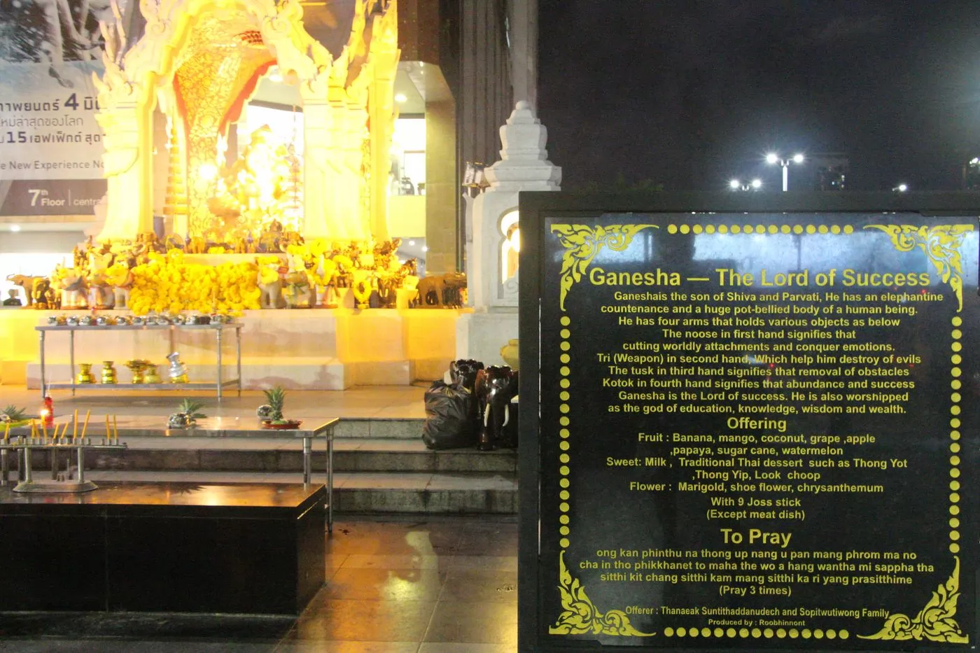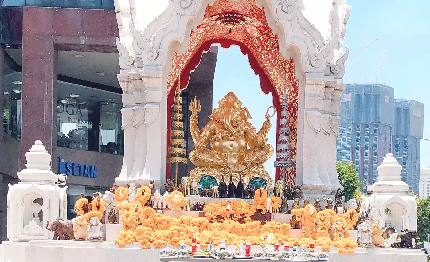 也可拜另外一座有名的象神,在Central World廣場、伊勢丹(Isetan)百貨前的象神(Ganesh Shrine;พระพิฆเนศ),印度教中的智慧之神,象徵知識與成功之神,很多泰國學生、藝術工作者常會去祈求學業與事業上的成功。