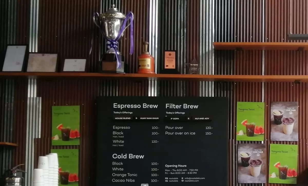 2016 年進駐這裡的Roots Coffee 會如此出名,是每次有曼谷特色咖啡專欄、咖啡店評比時,它一定會在榜內,而且獲得的評分都很高。
