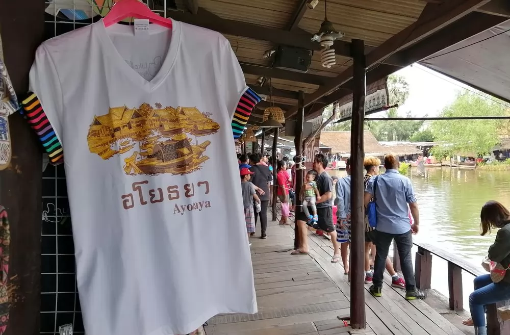 印有水上市場的紀念T恤,有好幾家店在賣,好幾種款式供選擇。