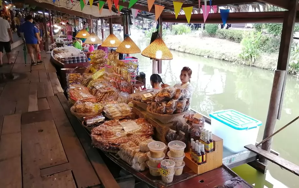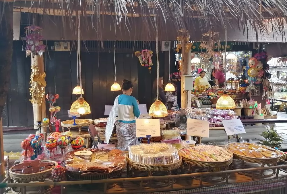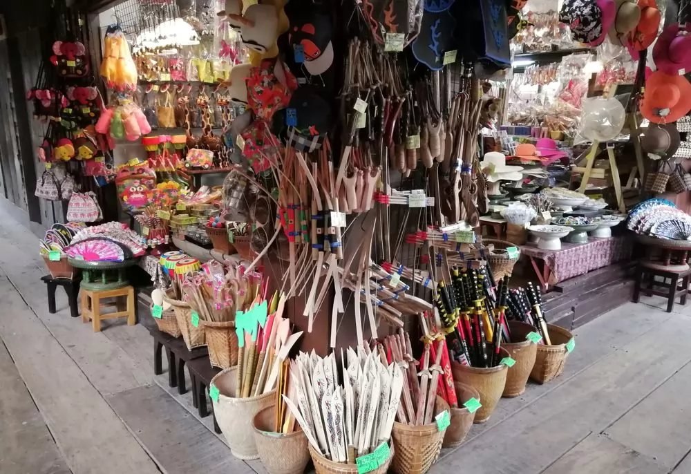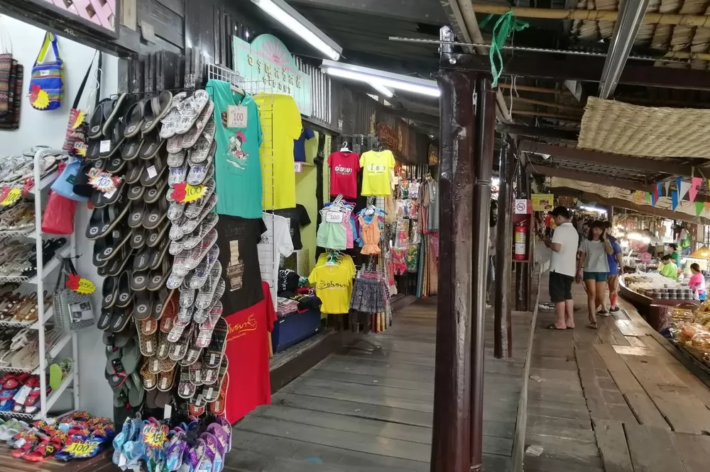 市場內的道路有橋和河邊小路,無論是岸邊,還是船上都有許許多多的小店,擁有琳琅滿目的商品供遊客盡情挑選,古玩、玩具、收藏品、 OTOP商品等等應有盡有。遊客不僅能買到可愛的商品,還將對泰式風格的市場氛圍印象深刻。