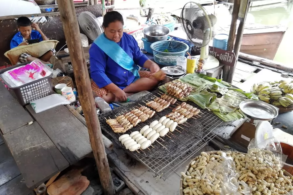泰國市場少不了各式各樣的傳統美食,平價好吃,開心地邊走邊看、邊選購美食。從最簡單的米粉湯開始到泰式點心、果汁冰沙,還是海鮮等,應有盡有。