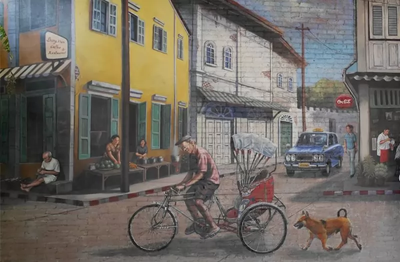 再往前走,就能看到畫滿塗鴉的牆壁,懷舊氣息濃郁。這些壁畫可是大家喜愛的合照點,坐在單車上,又或者是裝作跟畫裡的小孩合照,擺出各種有趣的姿勢。