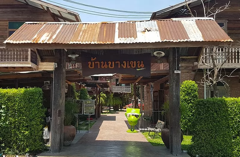 Baan Bangkhen聚集古老的主題元素,佈置的是復古風格,複製舊時的房屋、商店、飯店的裝飾風格,一磚一瓦或者是擺放的舊時物件,依照泰國60、70年代風格佈置的,親手觸摸古舊的傢俱、舊的收音機、電視機、電話、桌椅,蒸籠上放著熱氣騰騰的舊式點心、舊時的理髮店、藥店、教室......呈現在眼前,回到從前的美好時光。