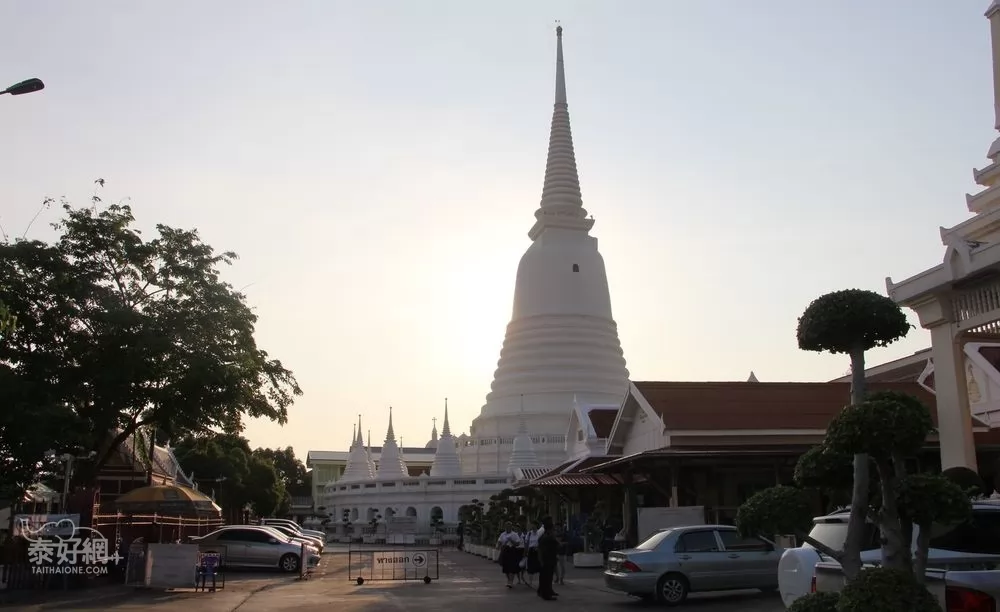 獨有的特色有一座白色的大佛塔(Phra Borommathat Maha Chedi;พระบรมธาตุมหาเจดีย์),周圍環繞18個小佛塔。入夜後打上燈光,更具氣勢。