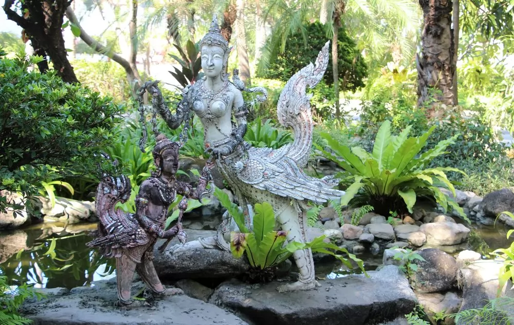 周邊也小橋、流水、以及神獸、守護神、象神的石像等的造景花園,來這裡拍拍照,也可以很悠閒地散步;也有3座佛殿供信眾參拜。