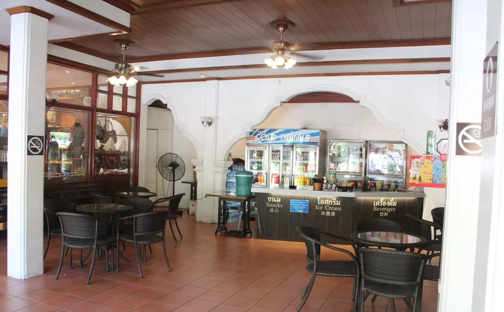 旁邊有紀念品店,賣各種與三頭象神及泰國民俗文物相關的紀念品;休息區裡有販售飲品、冰品及一些零食。