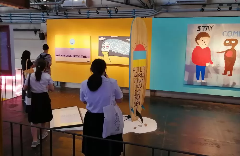 二樓主要是藝廊與共同工作空間,畫廊不定時舉辦展覽,主要由泰國瑪希隆大學的美術學生創作。這個空間每週還會舉辦研討會和豐富多彩的活動,平時看上去空空的,一有活動這裡就會擠爆。