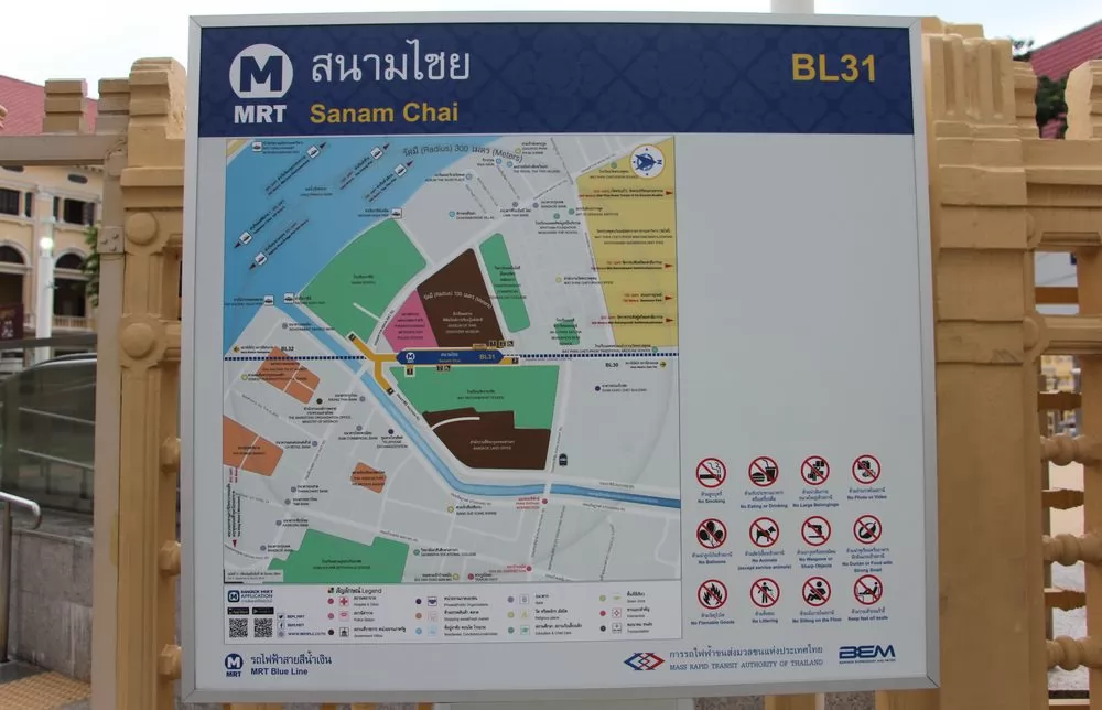 地點:沙南猜站(Sanam Chai Statio;สถานีสนามไชย)在沙南猜路,連接Phra Phiphit 路。