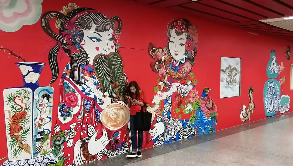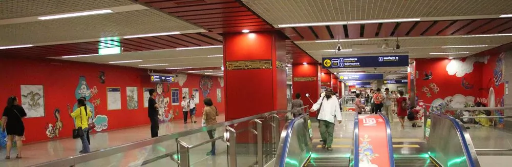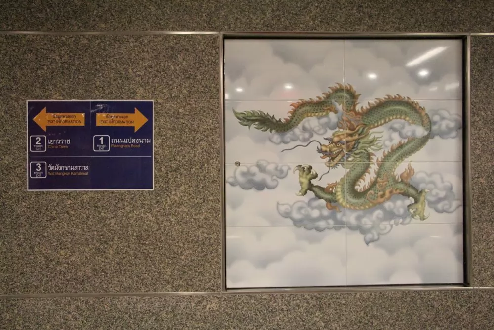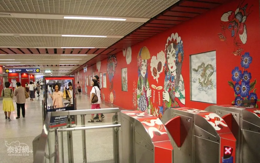 地鐵站內1號出口的柱子上有金色的鳳凰,這一設計靈感來之鴻拉塔姖拉母寺,而這個鳳凰的圖案,在泰國人民的信仰裡寓意著吉祥和聖潔。