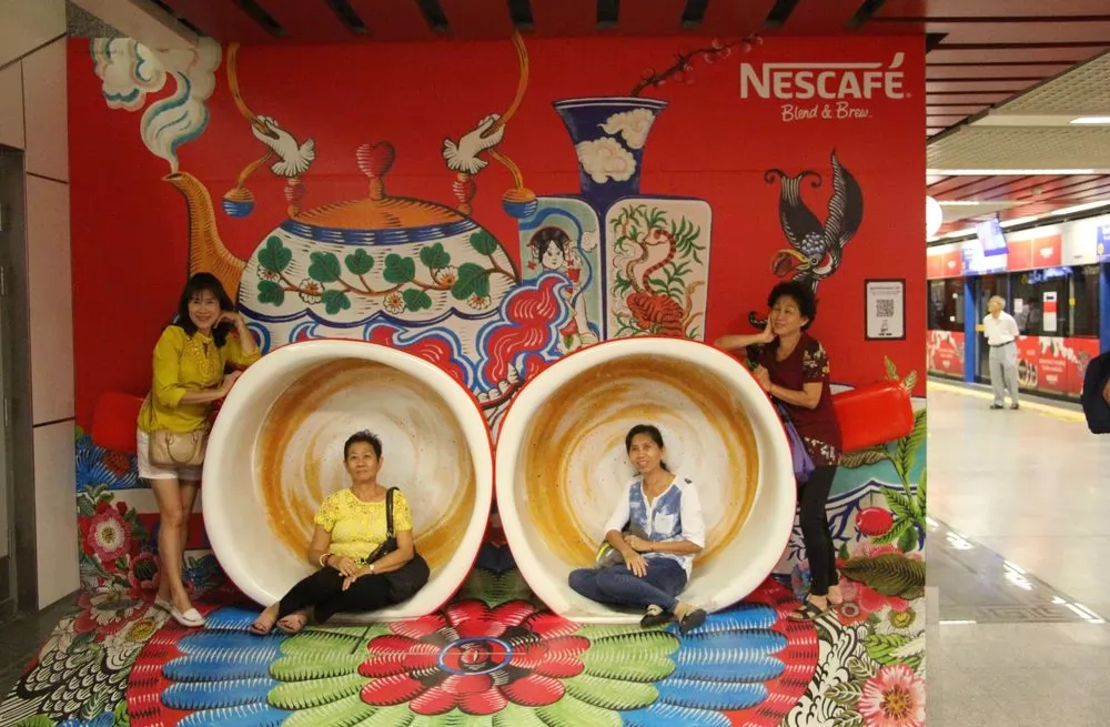 一出車廂立即能感受到這獨特的魅力,乘客不急著出站,反而妙紛紛拿出手機來自拍打卡,而且不只是年輕人,連小孩和坐輪椅的「阿媽」都要拍幾張照。