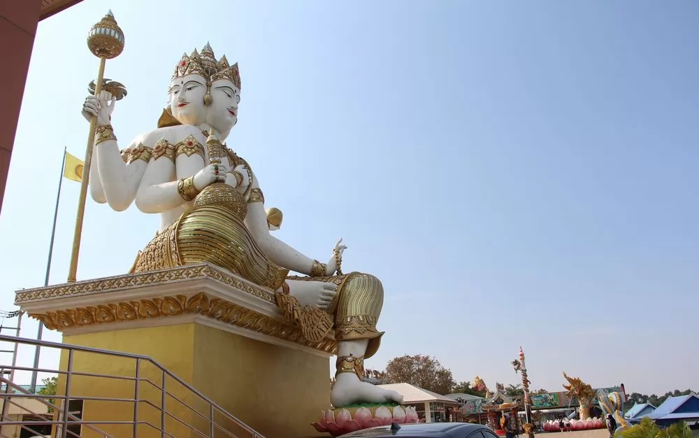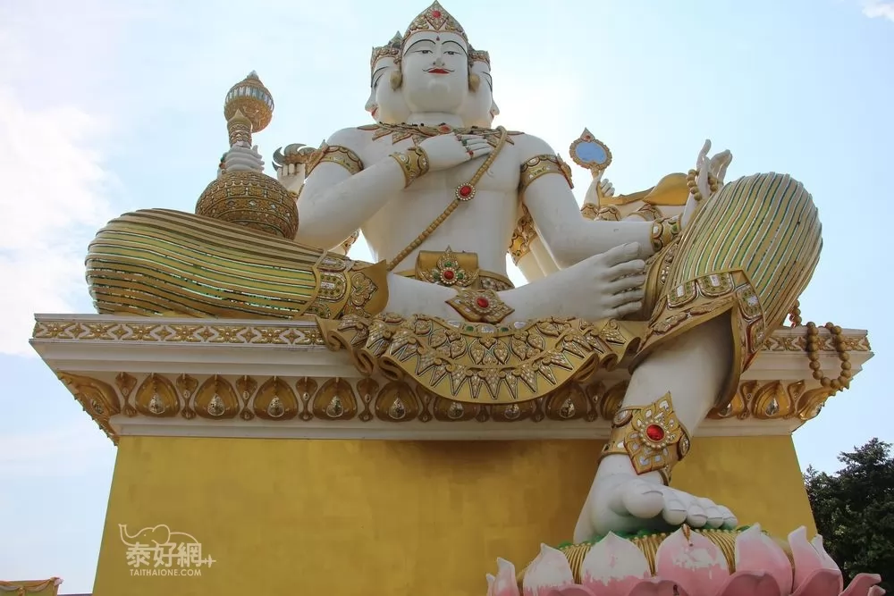 粉紅象神之外,四面佛也超級巨大,很驚人,腳踩蓮花,往上仰視,能體驗視覺和畫面雙重衝擊的特殊感受,目前沒有資料來確定是世界最大的四面佛。