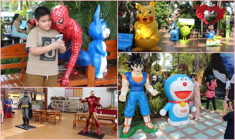 除了各式神像之外,寺院還融合現代風,四處擺設公仔,小叮噹、畢卡丘等卡通之外,這裡還有鋼鐵人、超人、蜘蛛人、機器人、忍者龜、蝙蝠俠等,有如主題樂園般的華麗寺廟,來這裡拍照的民眾絡繹不絕,尤其是周末假期更是特別多。