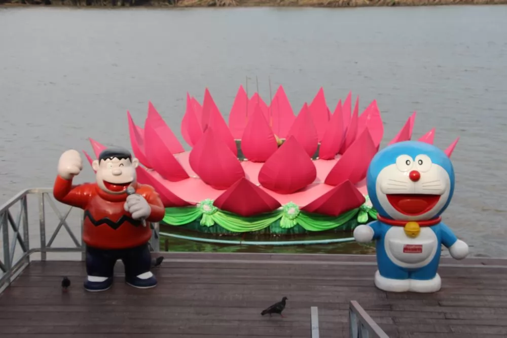 在河上的大蓮花檯,看起來超級漂亮的,中間最頂的位置為放置佛祖舍利的地方,安插小叮噹在這裡服務,覺得還蠻特別的。