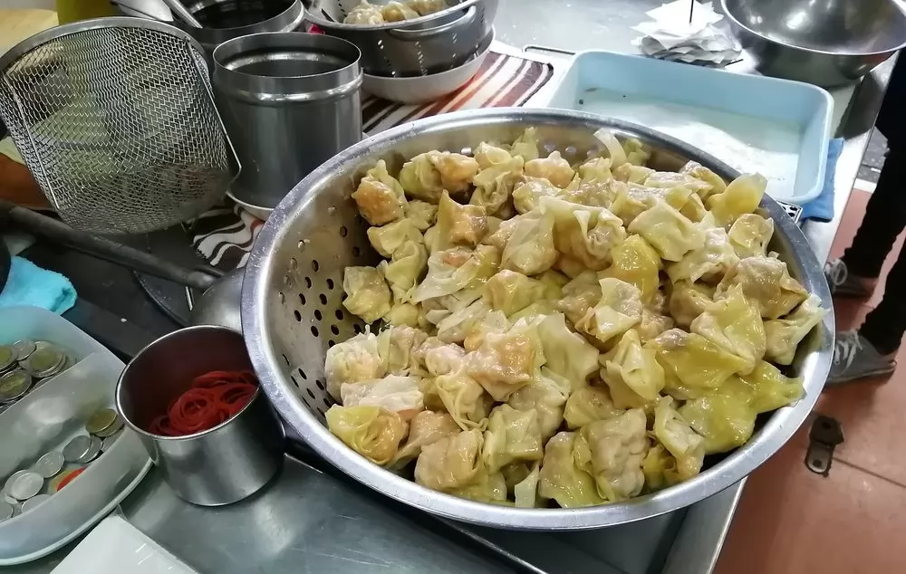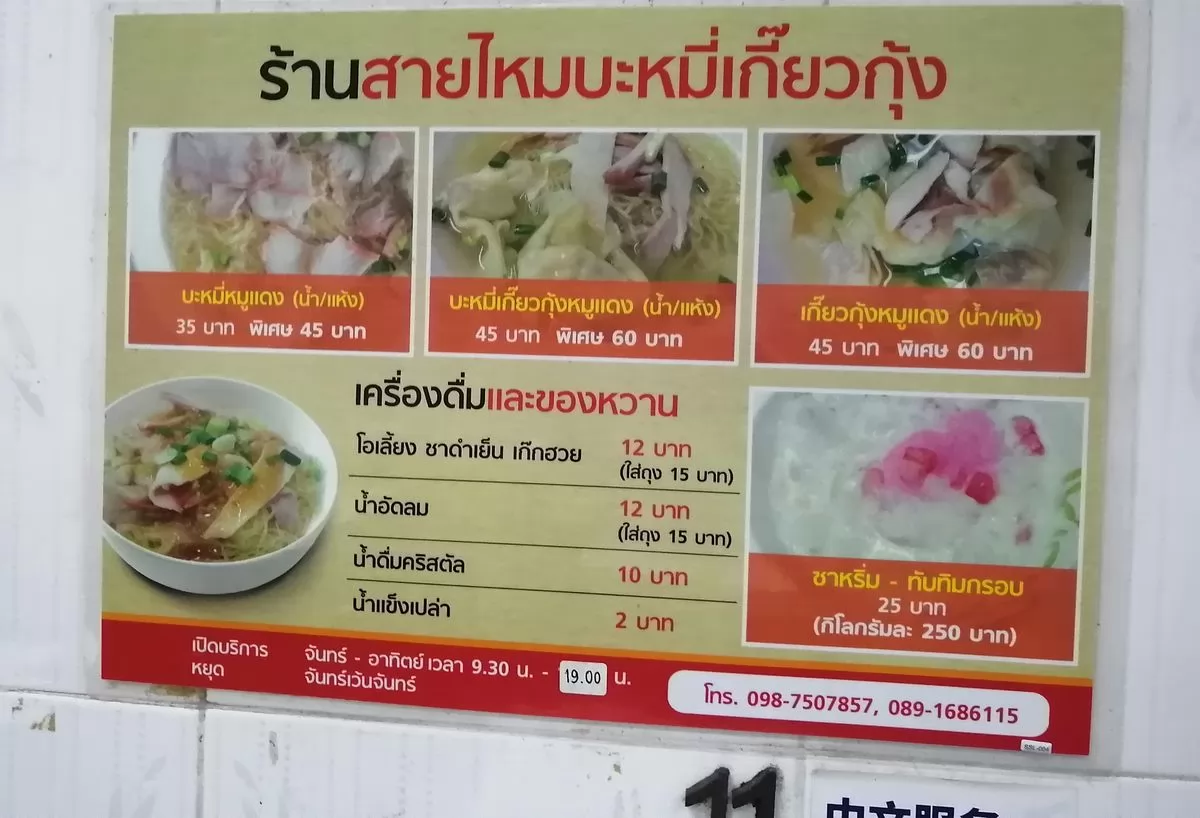 曼谷湄南河岸的王朗(Wanglang)市場裡,這家Sai Mai蝦餃雲吞麵(Sai Mai Bamee Kiew Kung;สายไหมบะหมี่เกี๊ยวกุ้ง)人氣超旺,已賣超過21年了,以蝦餃雲吞麵最出名!