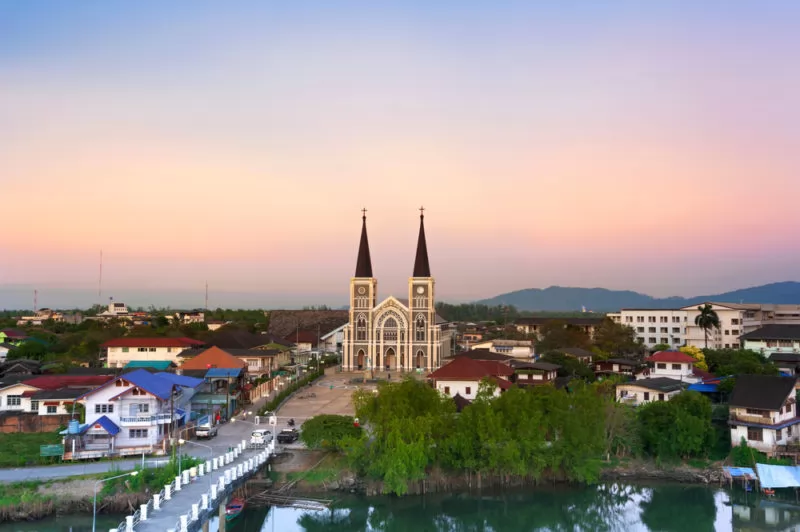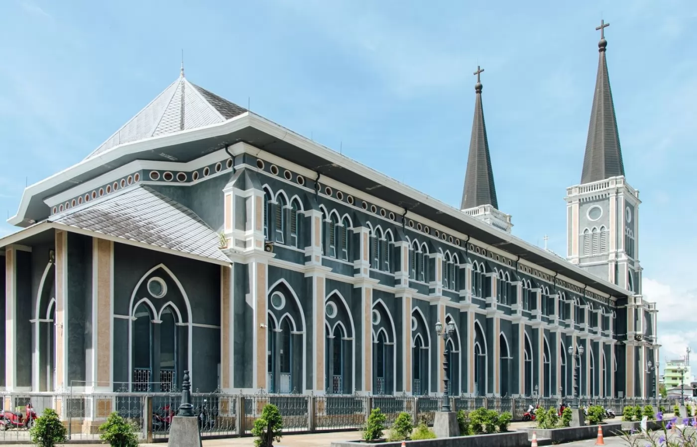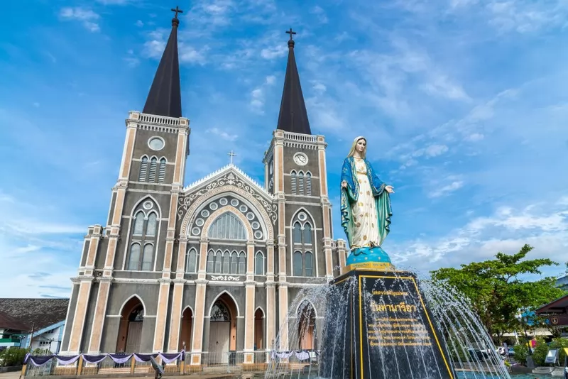 聖母瑪利亞天主教堂(Cathedral of the Immaculate Conception ;อาสนวิหารพระนางมารีอาปฏิสนธินิรมล)就是尖竹汶府的地標性建築,目前是泰國境內規模最大的法式建築、歷史最悠久的天主教教堂,是來尖竹汶的必遊打卡地。